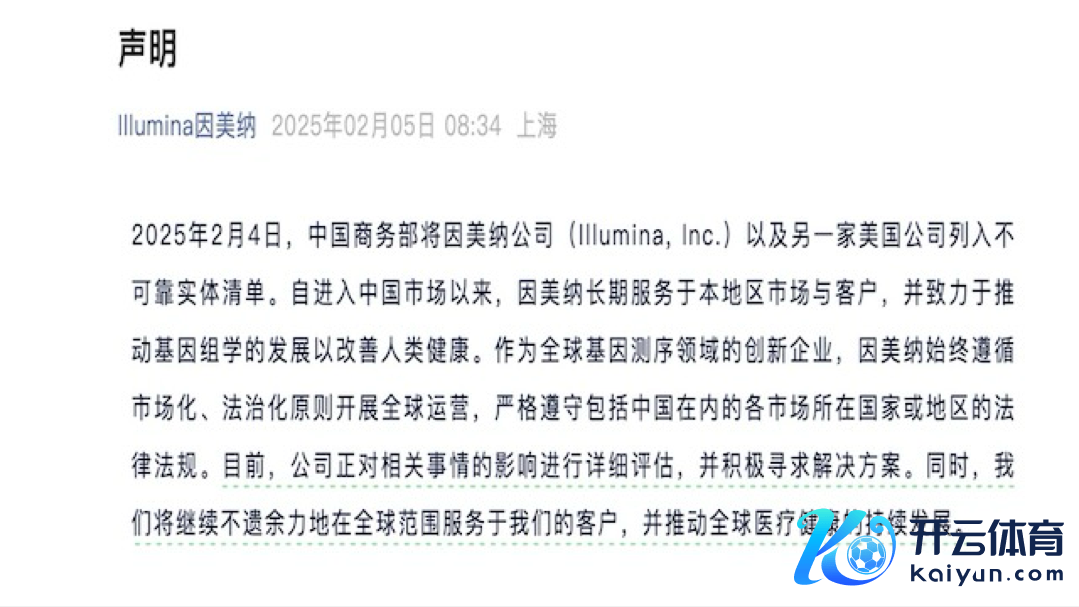 基因测序诱骗是因好意思纳的中枢业务。因好意思纳示意,正在评估中国的最新举措,以充分了解该要领对中国业务的影响,并称将在顺从商务部指引磋商的前提下开展业务。