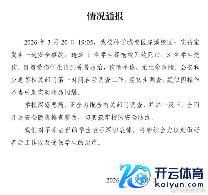重庆大学通报1死3伤事故:疑似因操作失当激发履行物品闪爆重庆大学通报1死3伤事故:疑似因操作失当激发履行物品闪爆